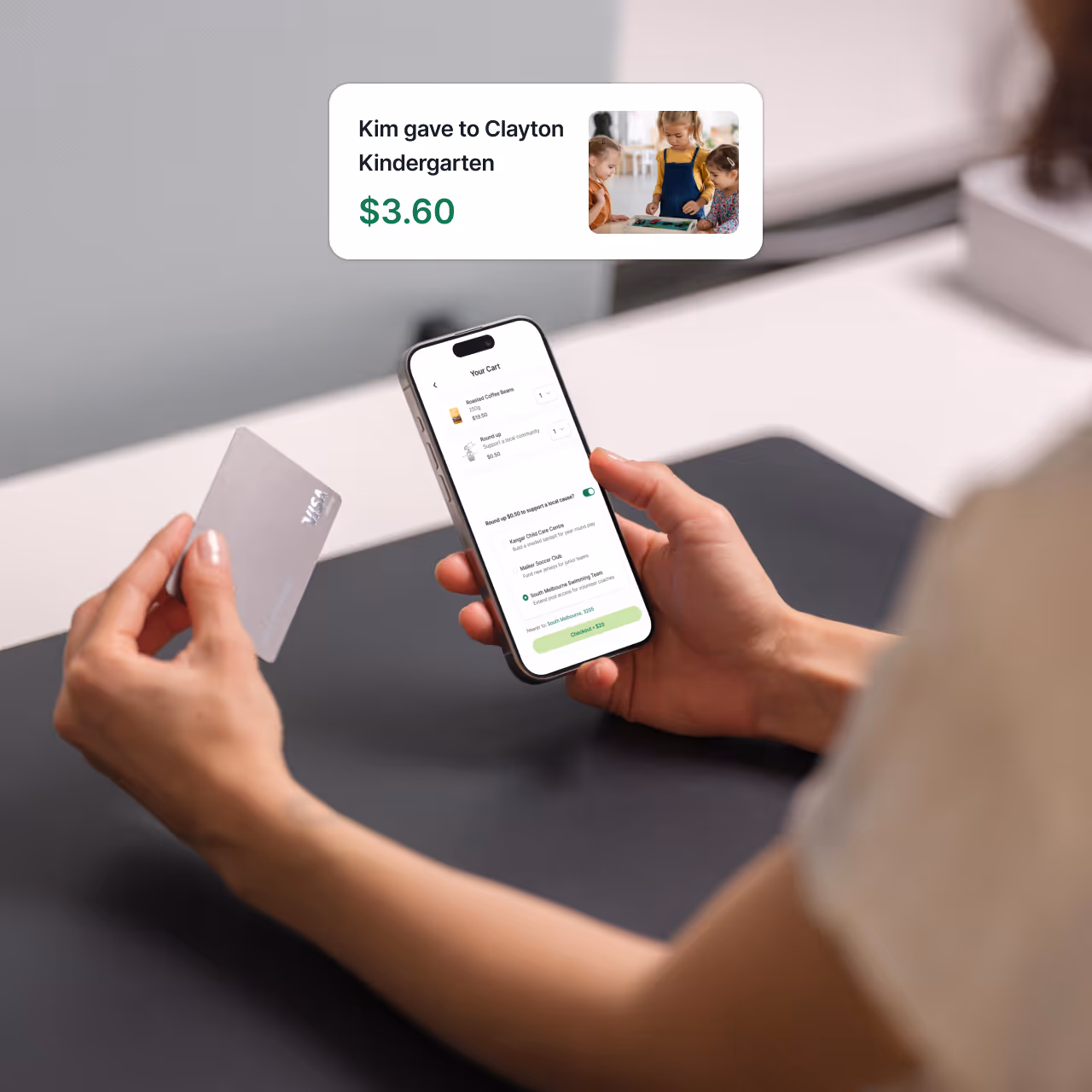 Customers see the option to round up and choose from three local causes based on their postcode or suburb.